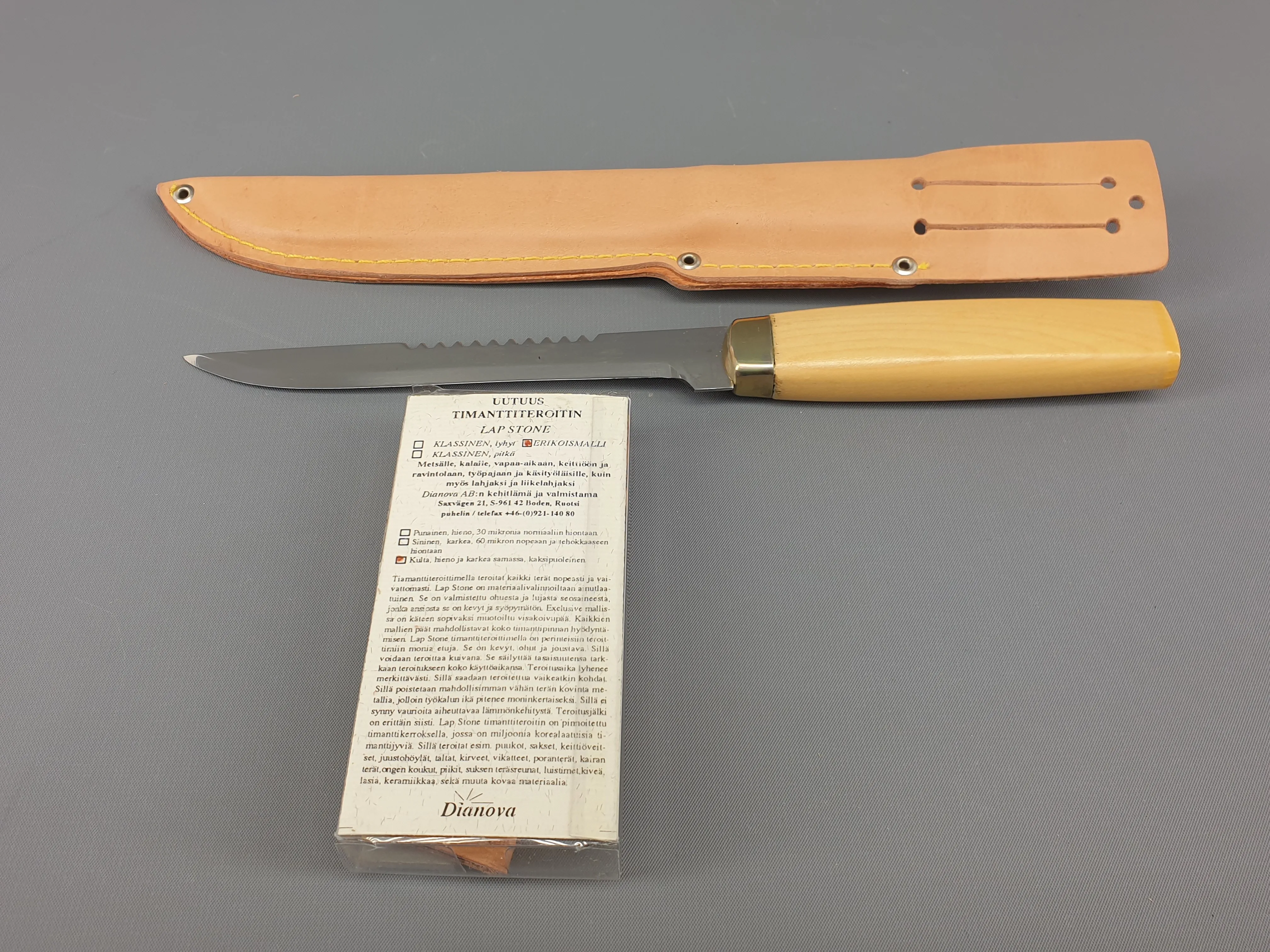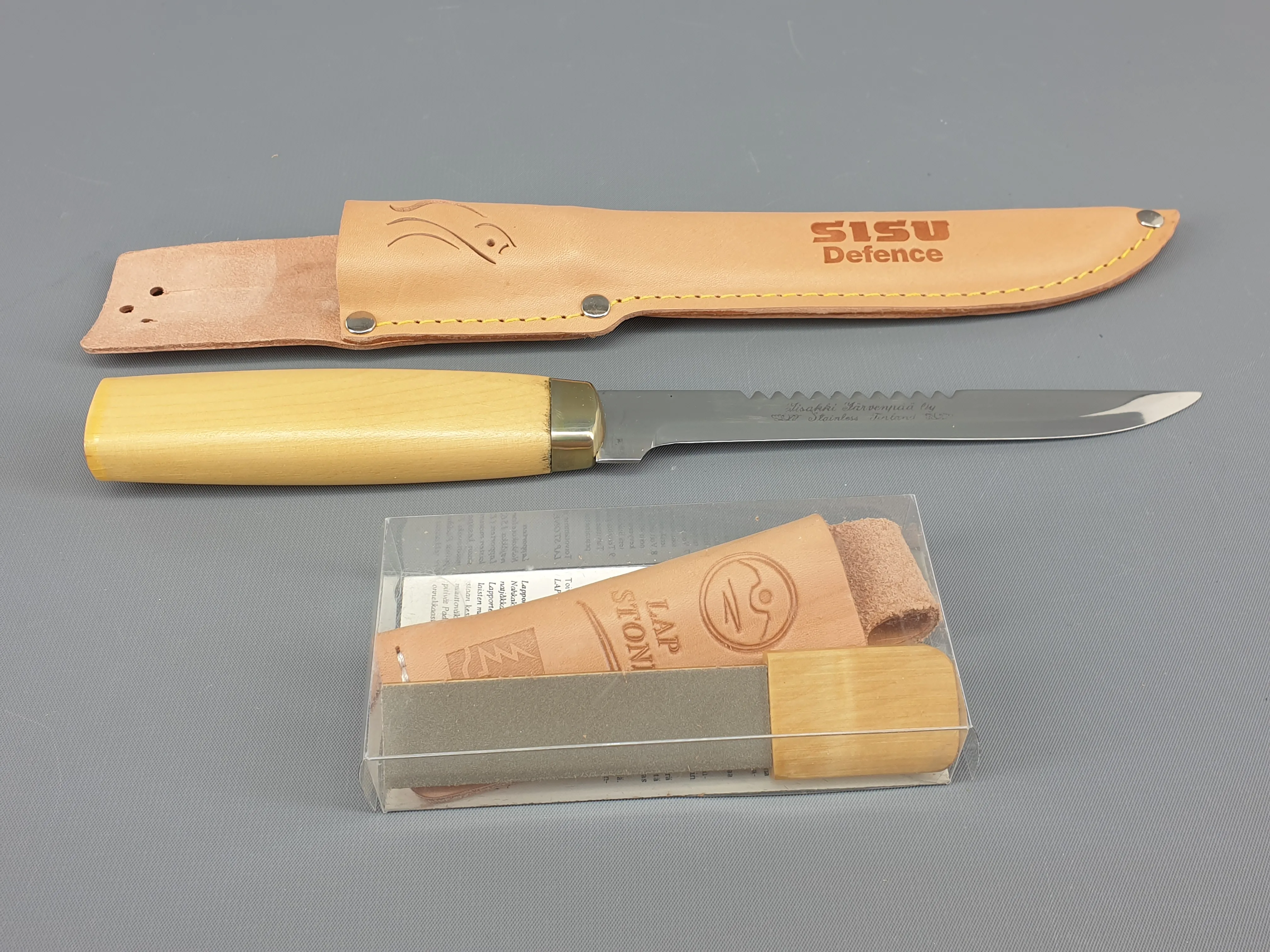 255. Iisakki Järvenpää kalaveitsi ja hiomakivi