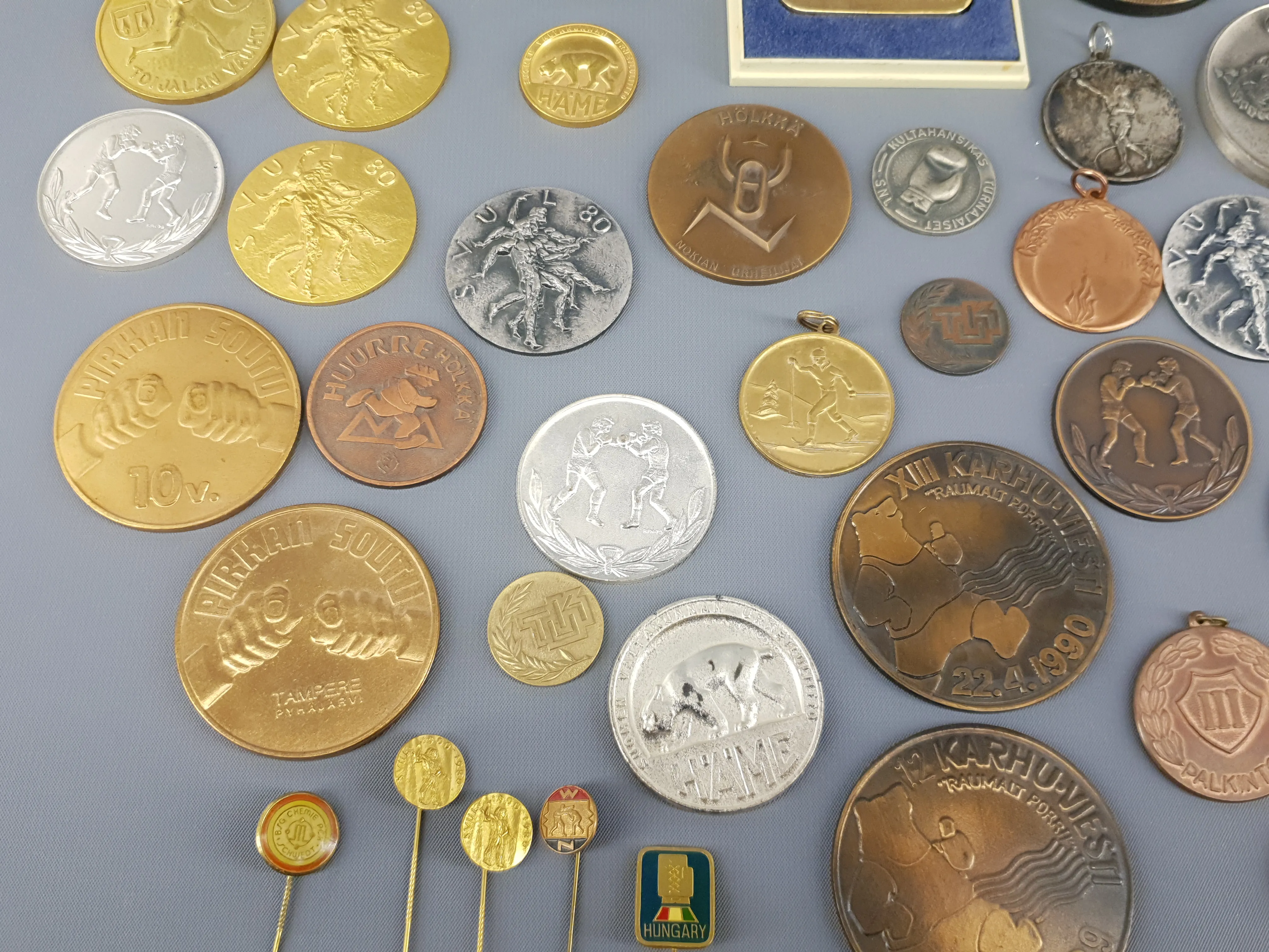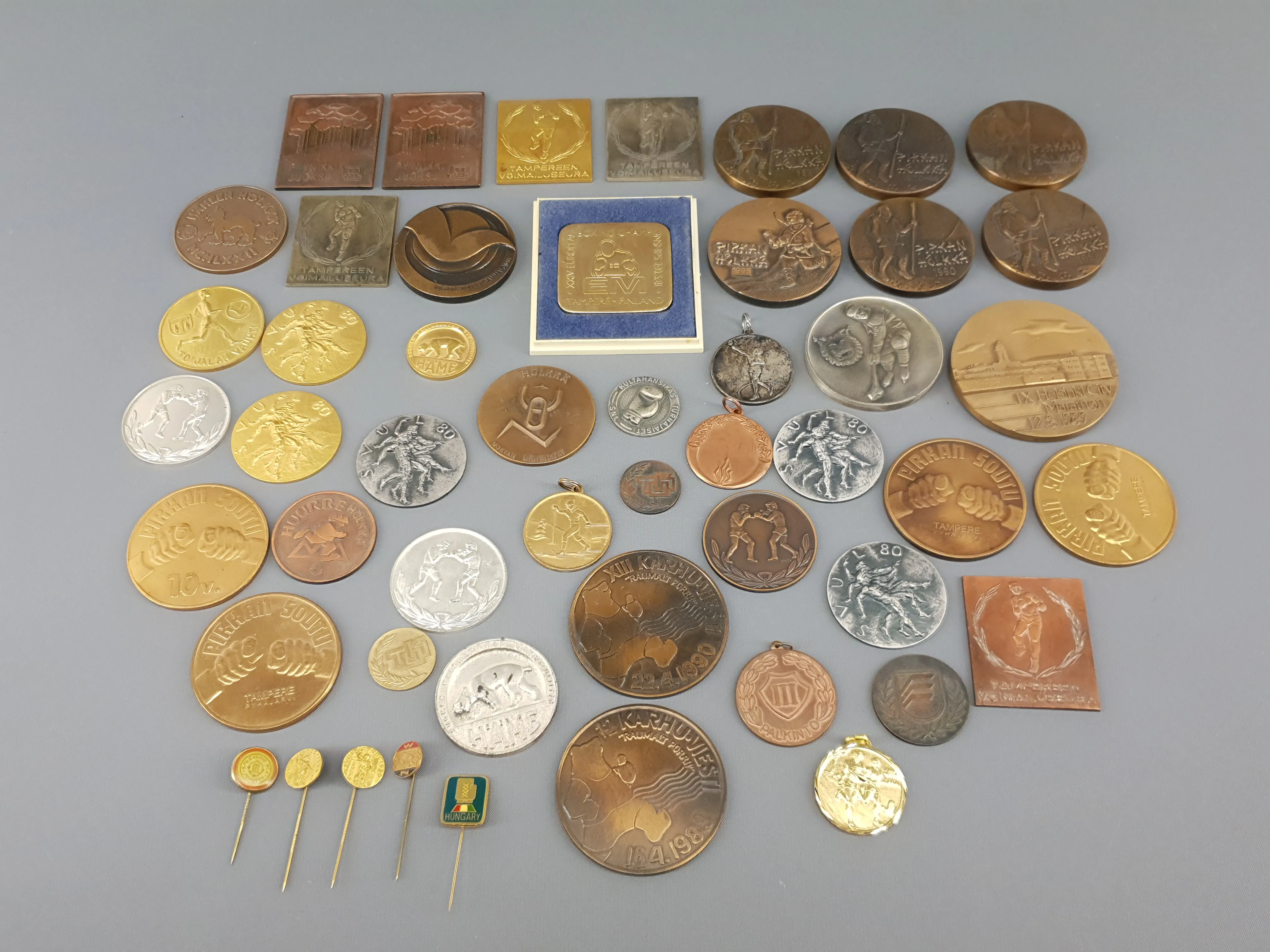 260. Mitaleja ja pinssejä noin 50 kpl
